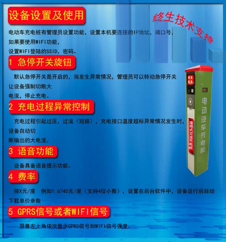 电动汽车充电桩常用功能介绍: