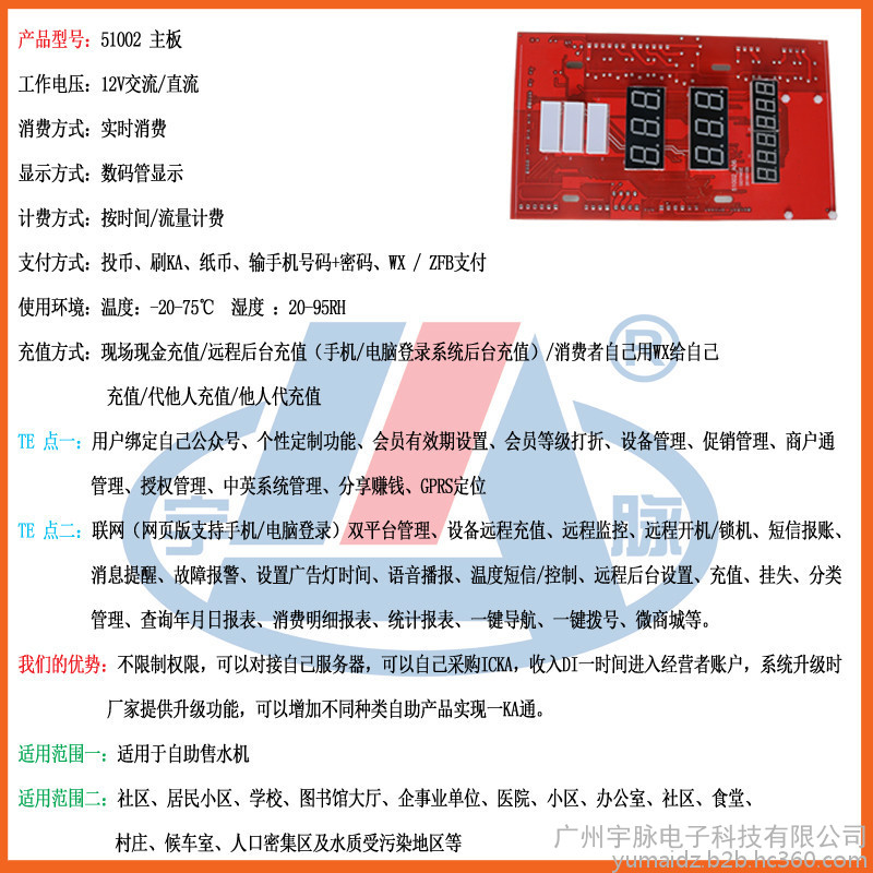 宇脉自助售水机主板厂家 欢迎来电 18520500709