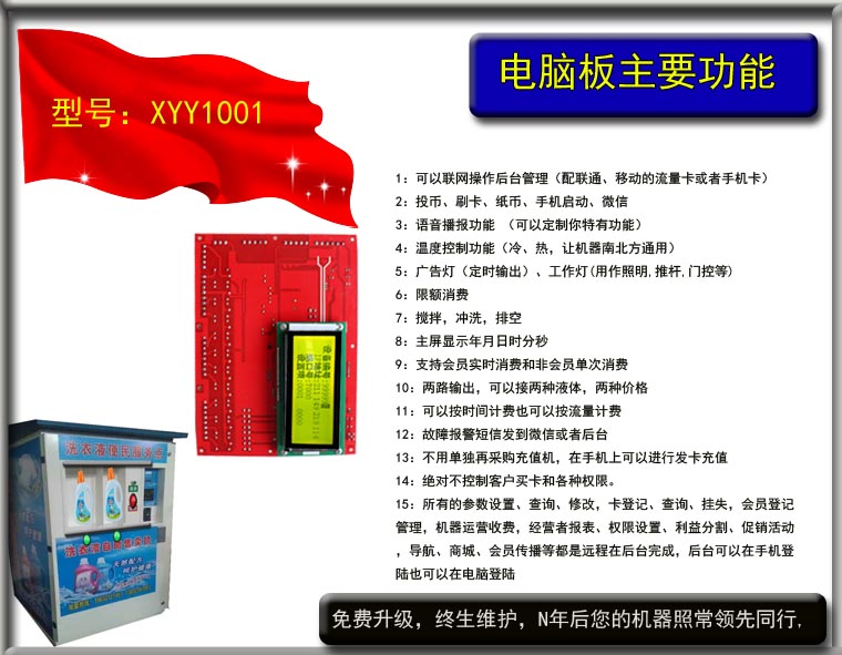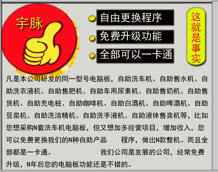 (2)后台可以远程设置,修改机器的参数,可以远程查看设备状态、营业的收入,注册会员,充值,挂失,查看每张卡的消费情况,可以打印日、月、年报表,故障报警消息提醒等等,现象功能另有说明书。